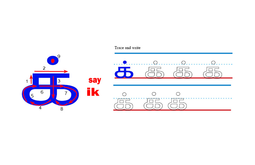 - க்+ஊ= கூ ik+ooh=koo koo as in cuckoo
