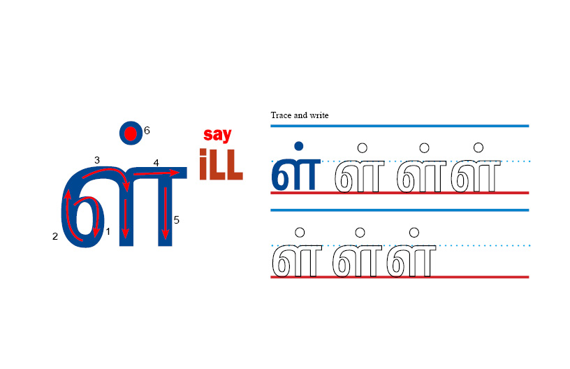 The sixth Tamil vowel “ஊ” (ooh) joins with the consonants to create the eighteen uyirmey letters. They adapt the sound of the vowel“ஊ” (ooh) and have a longer sound duration of two seconds.